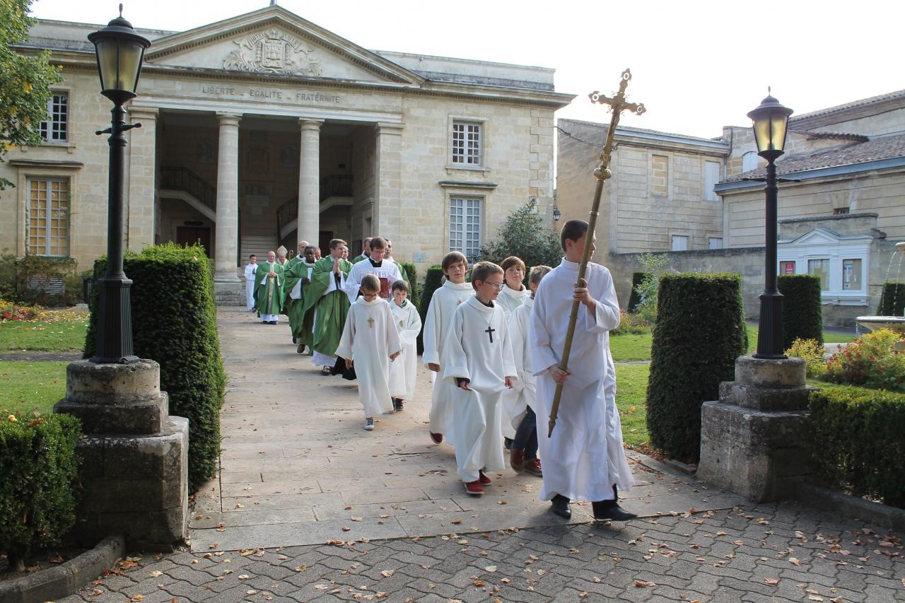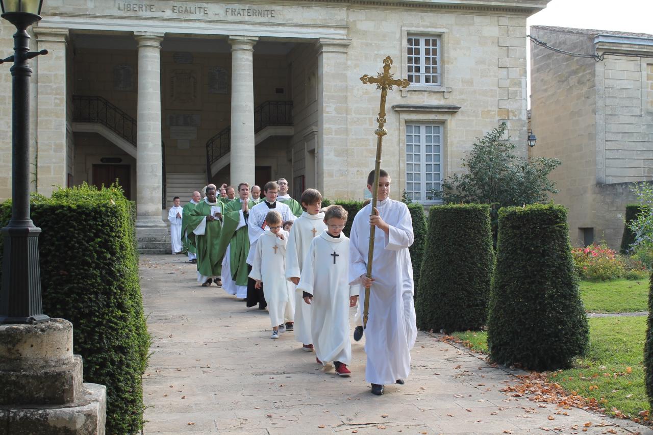 Nous saluons aussi très amicalement les prêtres et diacres présents aujourd'hui, tous les amis de notre nouveau curé et les membres de sa famille qui ont tenu à l'entourer.Enfin nous remercions de leur présence Monsieur le maire de Castillon, Conseiller Départemental, et Madame la Conseillère Départementale, ainsi que tous les élus.